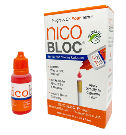 The only product that blocks up to 99% of tar and nicotine. Made from natural ingredients and is drug free. Applied to the filter just prior to smoking and absorbed into the filter.